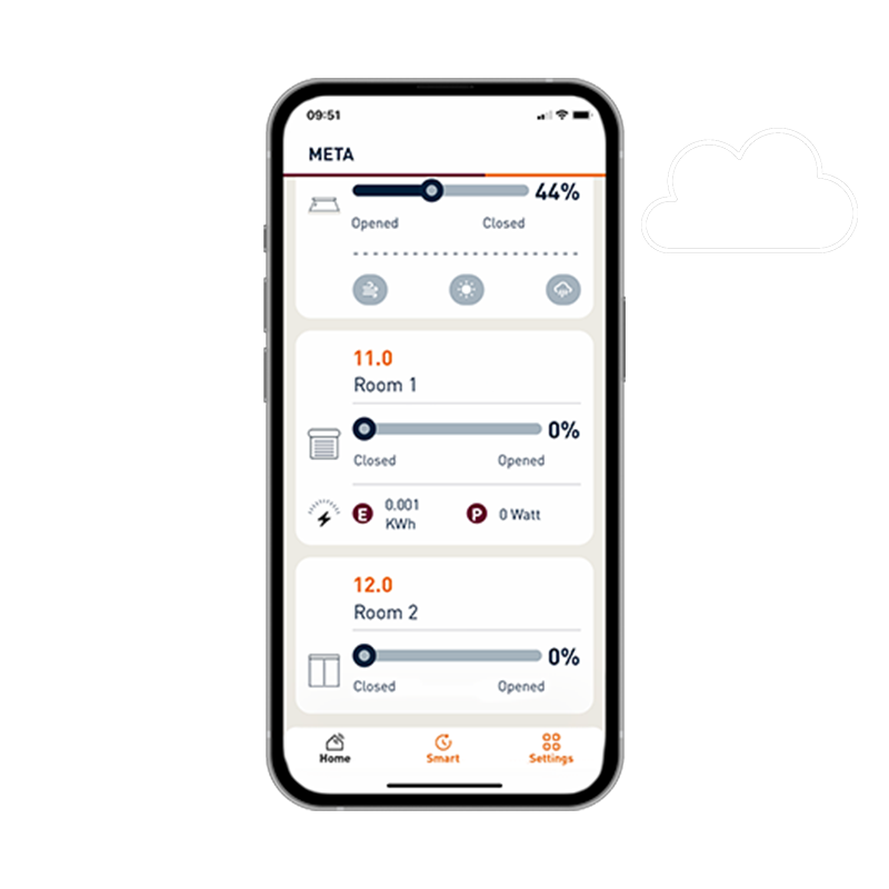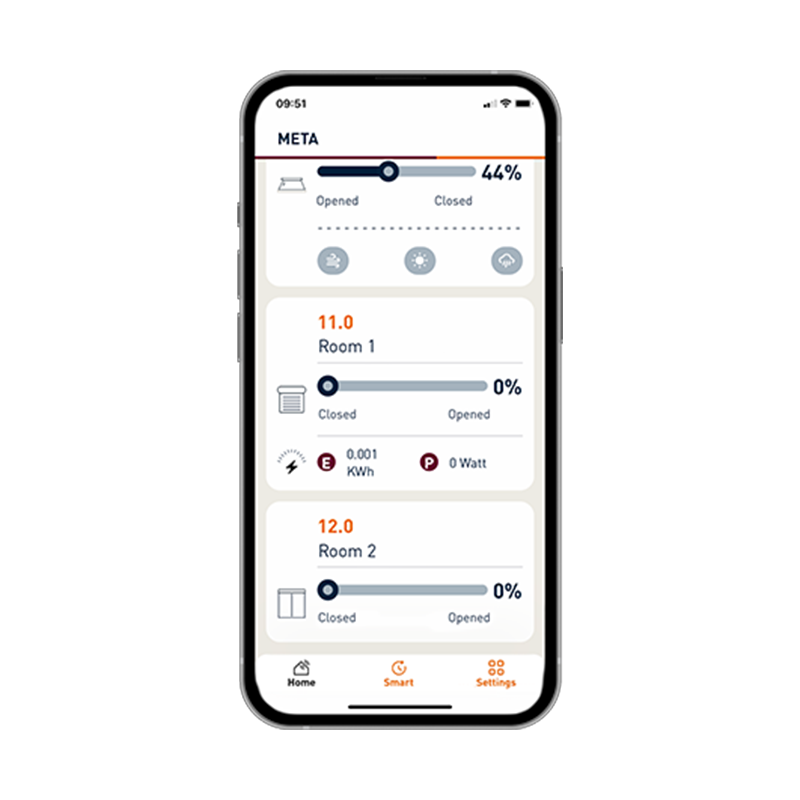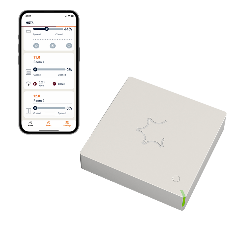 Empieza con una instalación sencilla basada en motores Wi-Fi WRX y control desde la app Metahome. Y cuando tu instalación evoluciona, puedes añadir fácilmente más tecnología: sensores, iluminación avanzada o motores y dispositivos con protocolo Z-Wave, gestionados desde un único controlador Metahome Hub.